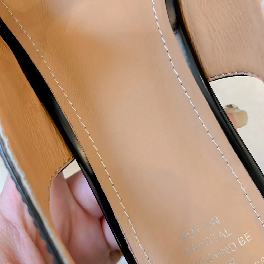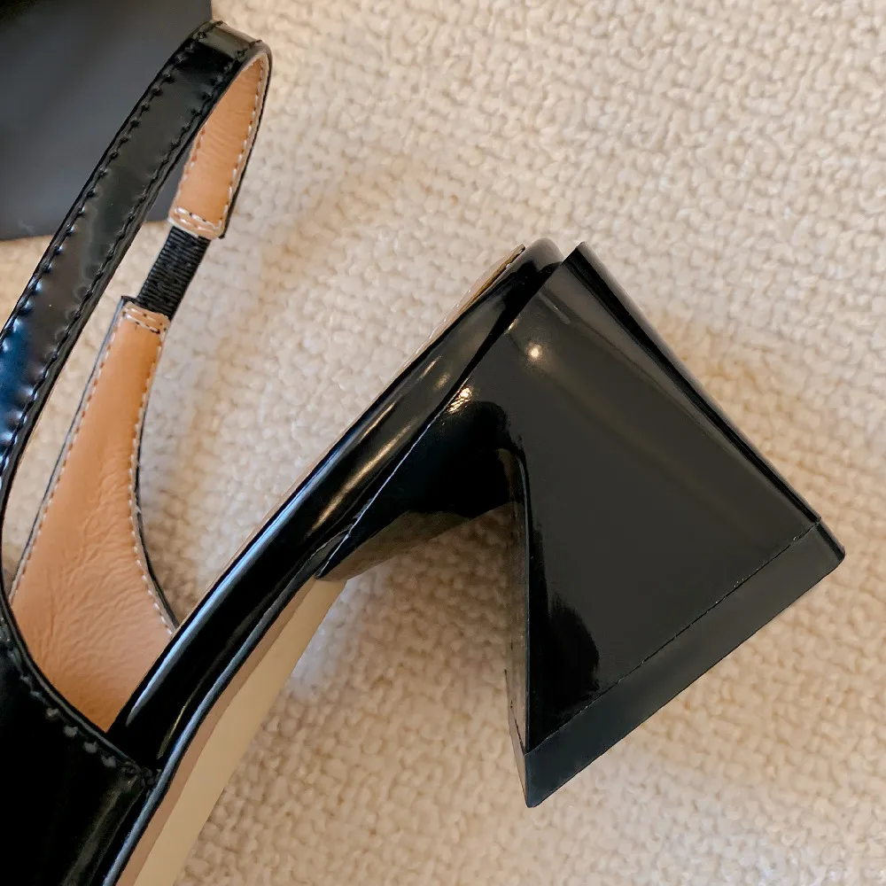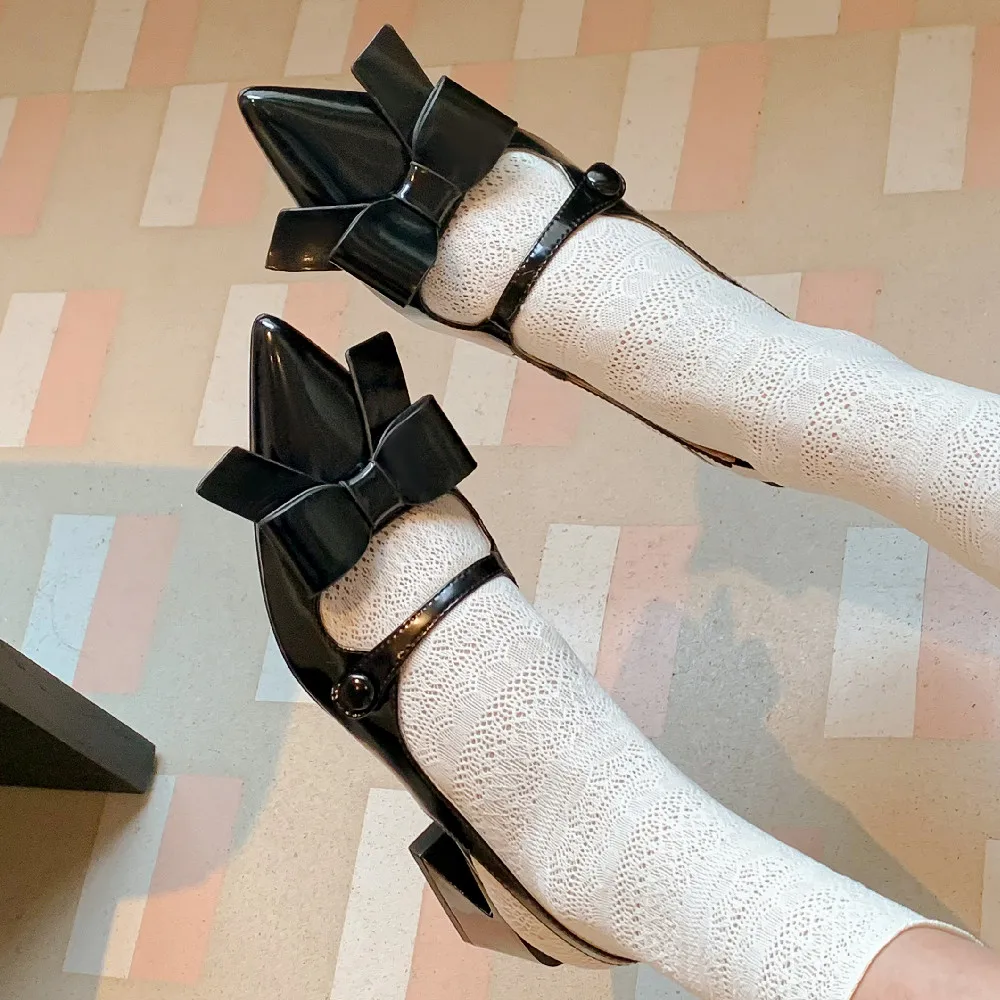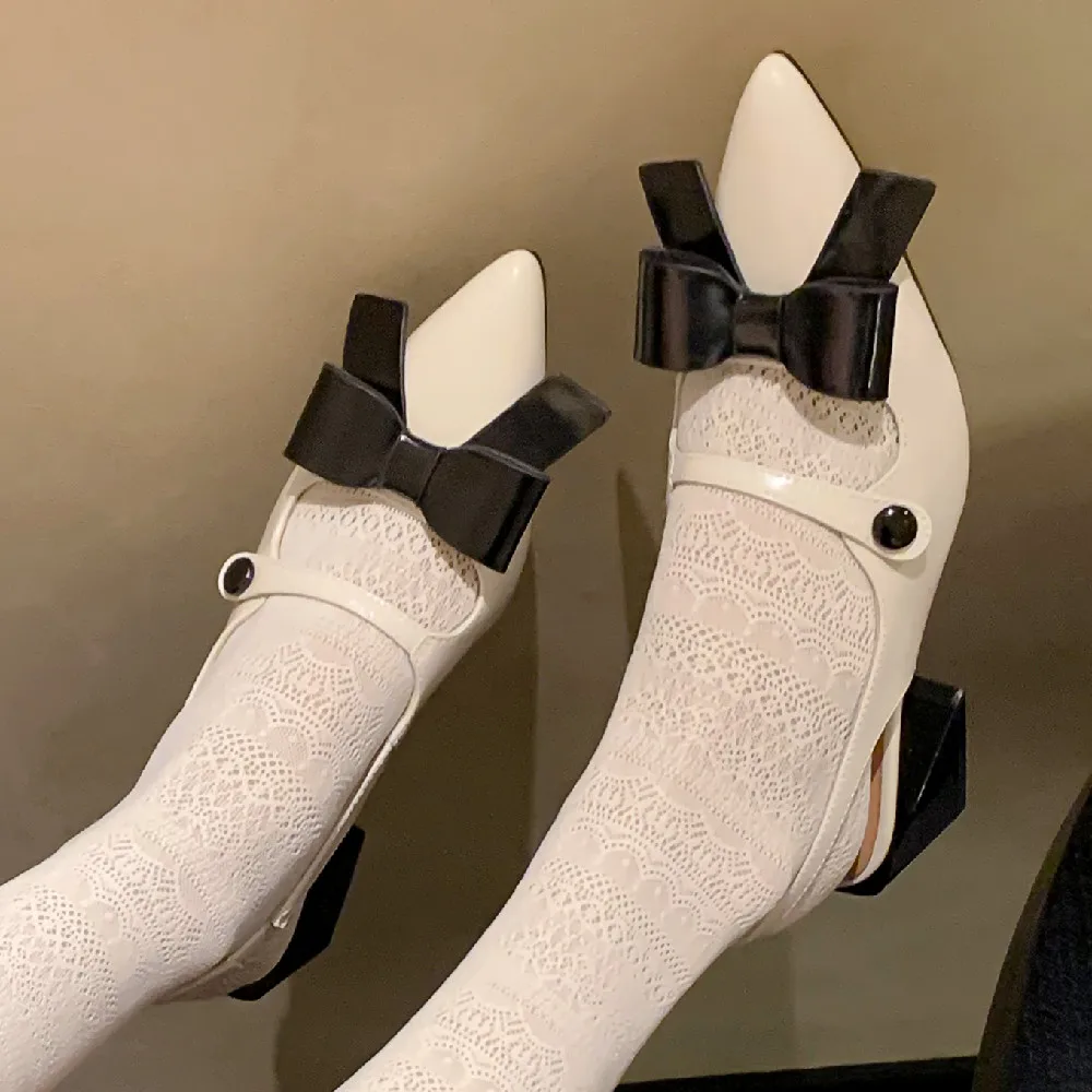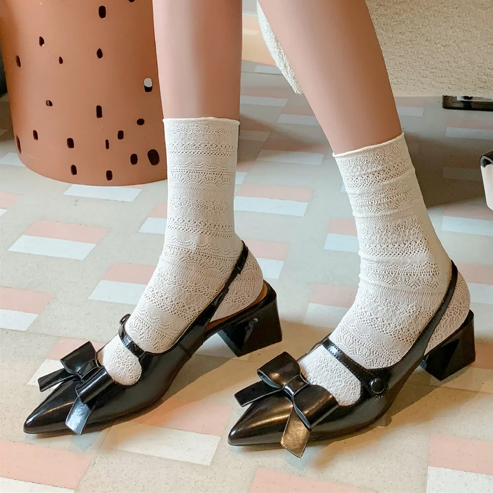 Kylethomasw - Women's genuine leather thick high heel pointed toe slip-on pumps sweet bowtie korean style summer heeled sandals shoes women