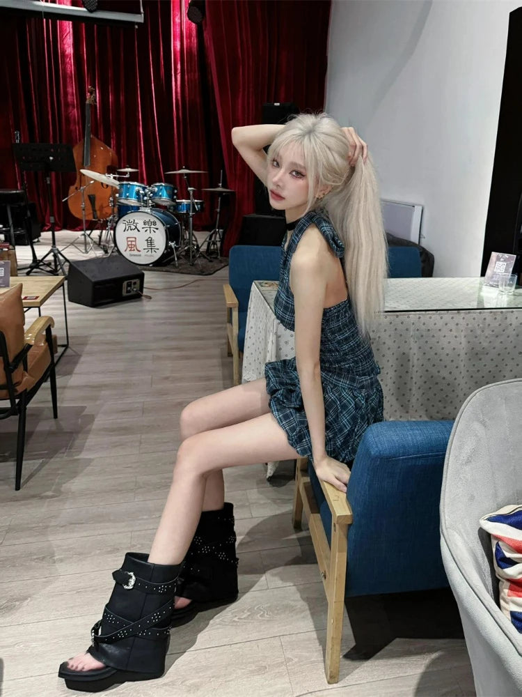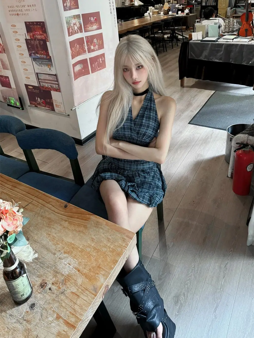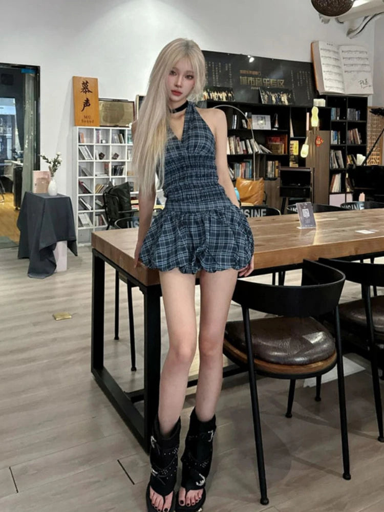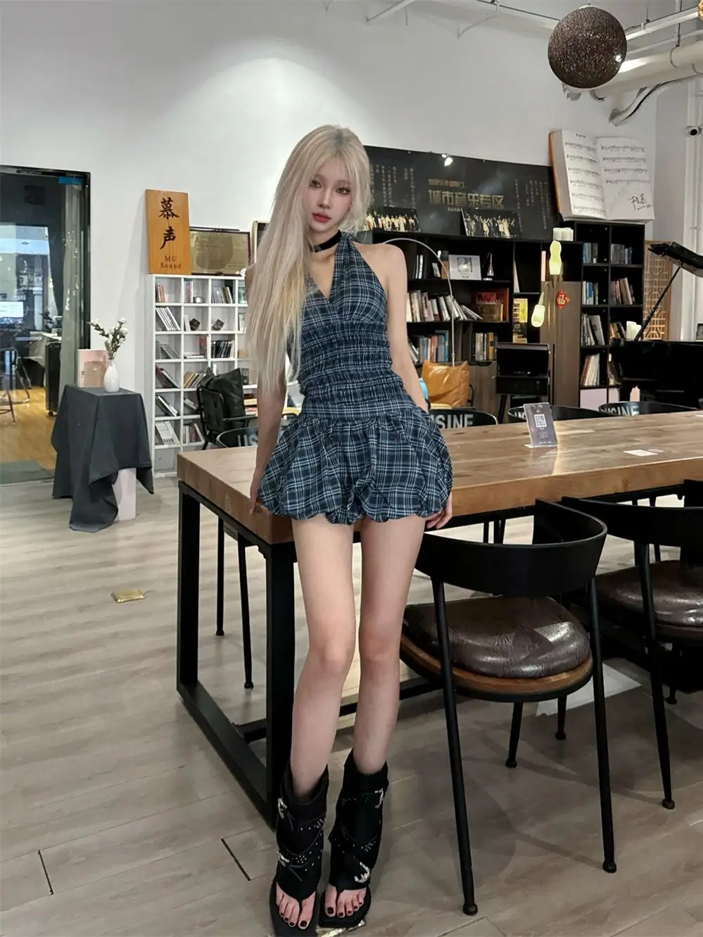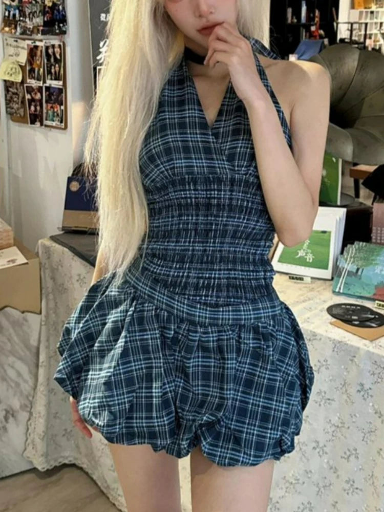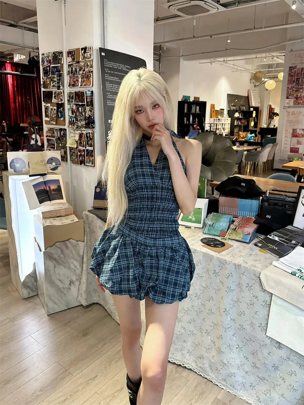 KYLETHOMASW - Y2K 90s Korean Harajuku Two-piece Set High Waist A-line Mini Skirt and Crop Top Sweet Blue Kawaii Grunge Summer Outfit