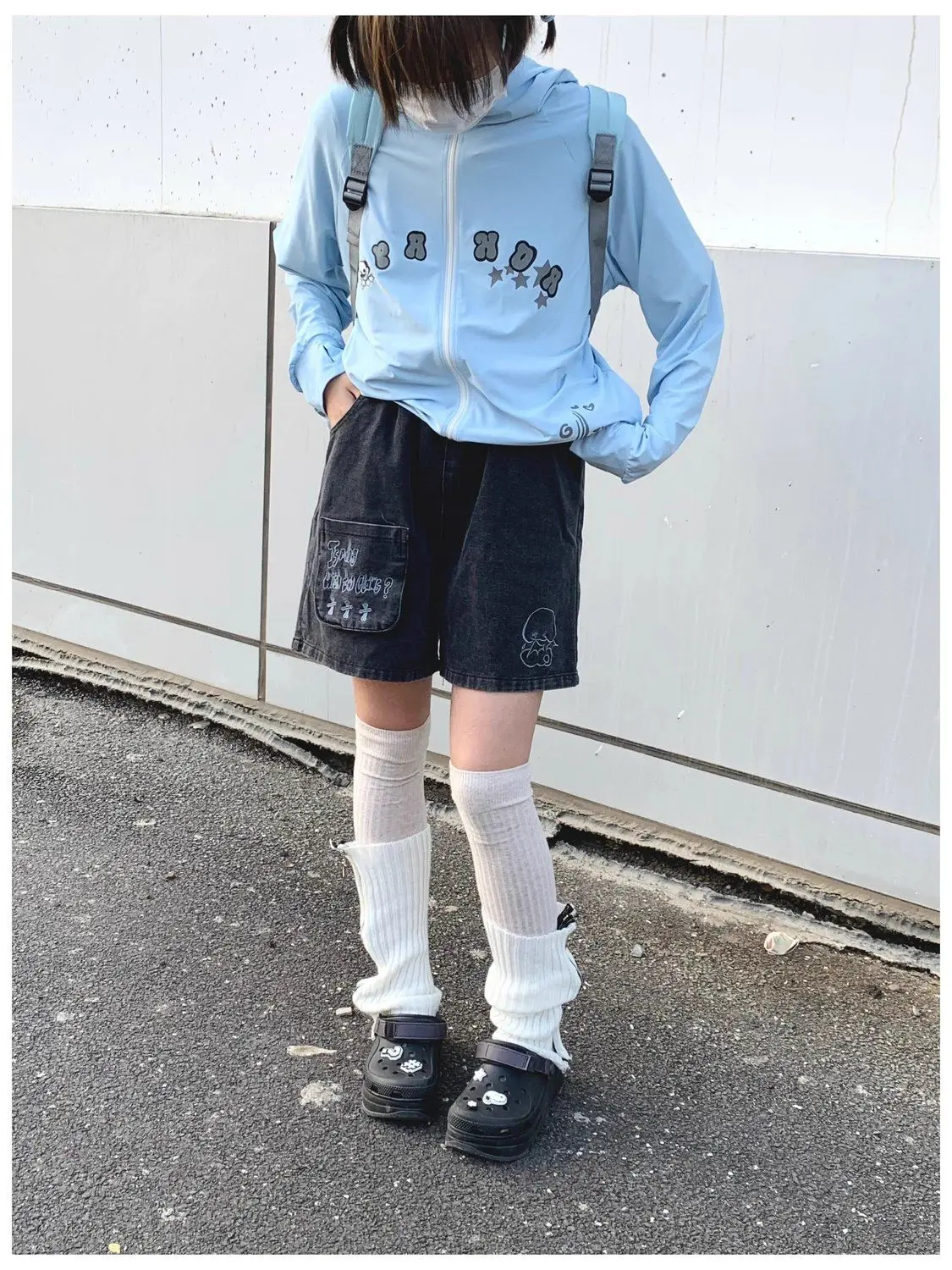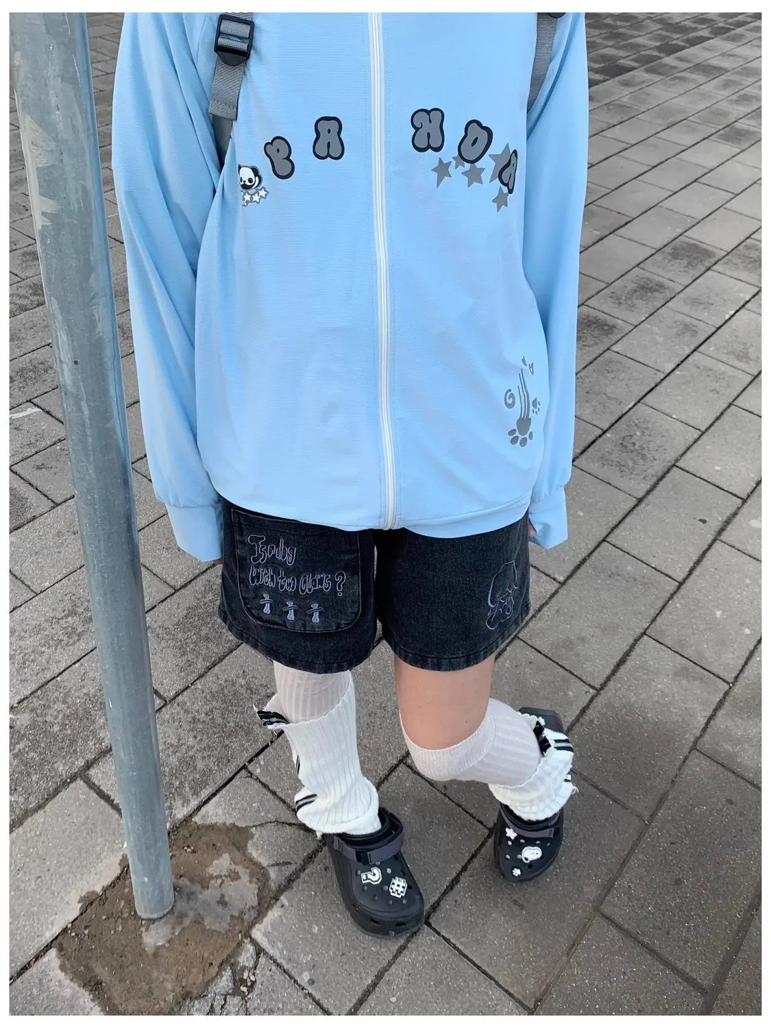 Kylethomasw Y2k Japanese Denim Shorts Women Harajuku Fashion Cartoon Embroidery Baggy Summer Jeans Short Streetwear Vintage Bottoms