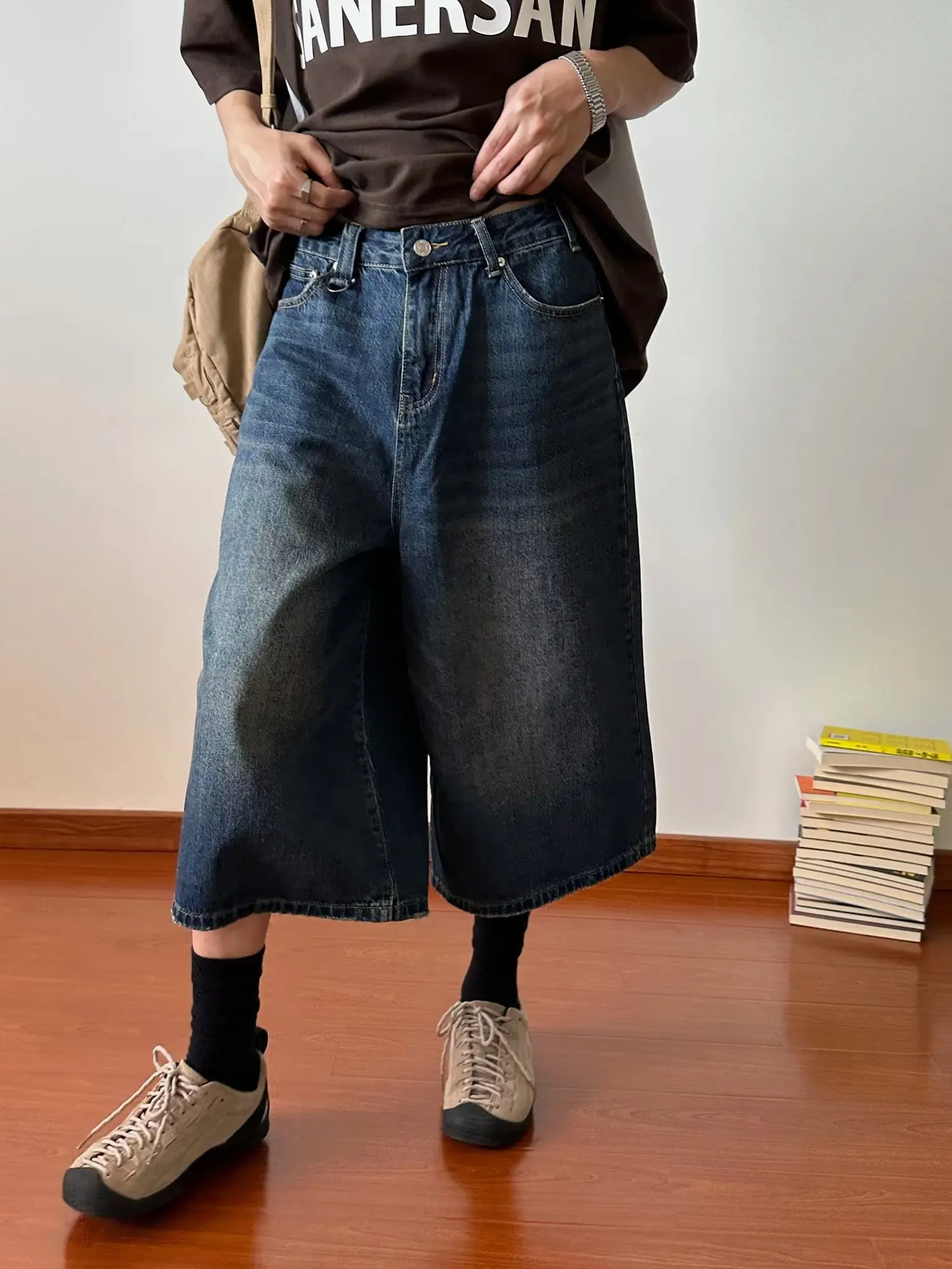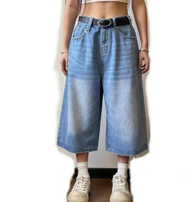 KYLTHOMASW - Fashion Harajuku Vintage High Waist 2000S Blue Denim Shorts Women's Casual Loose Fit Y2K Punk Streetwear Style Baggy Shorts