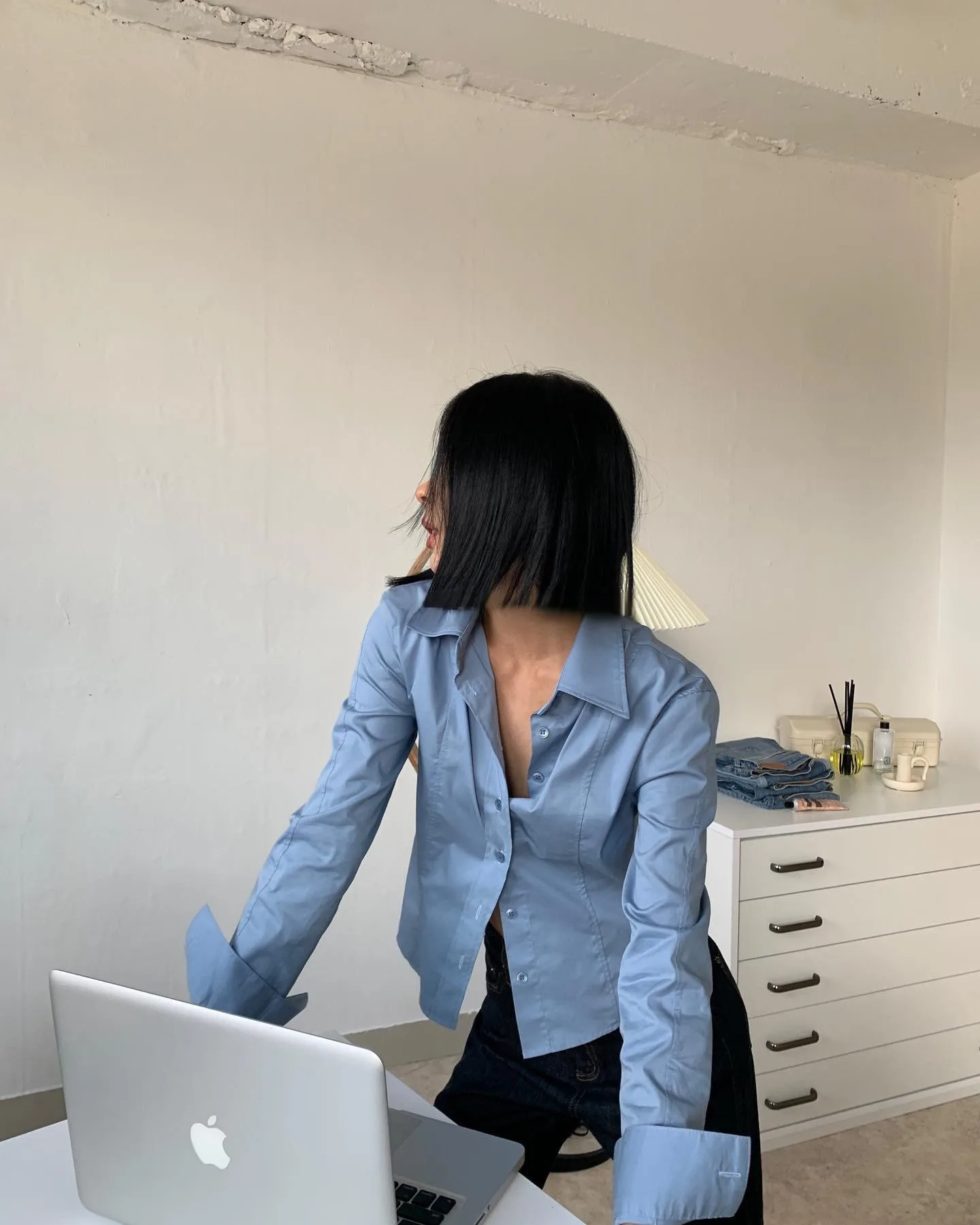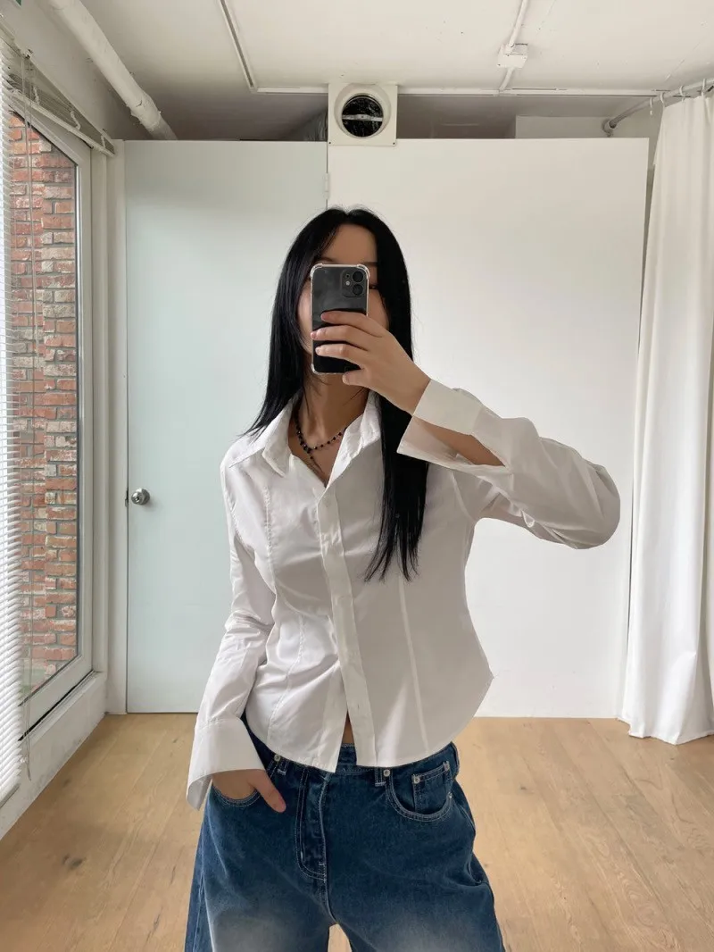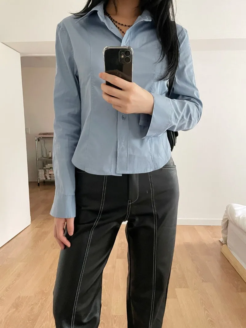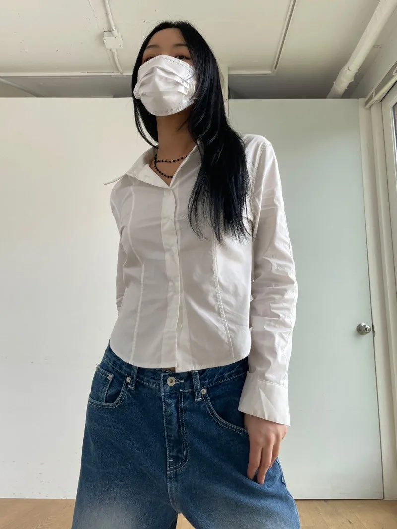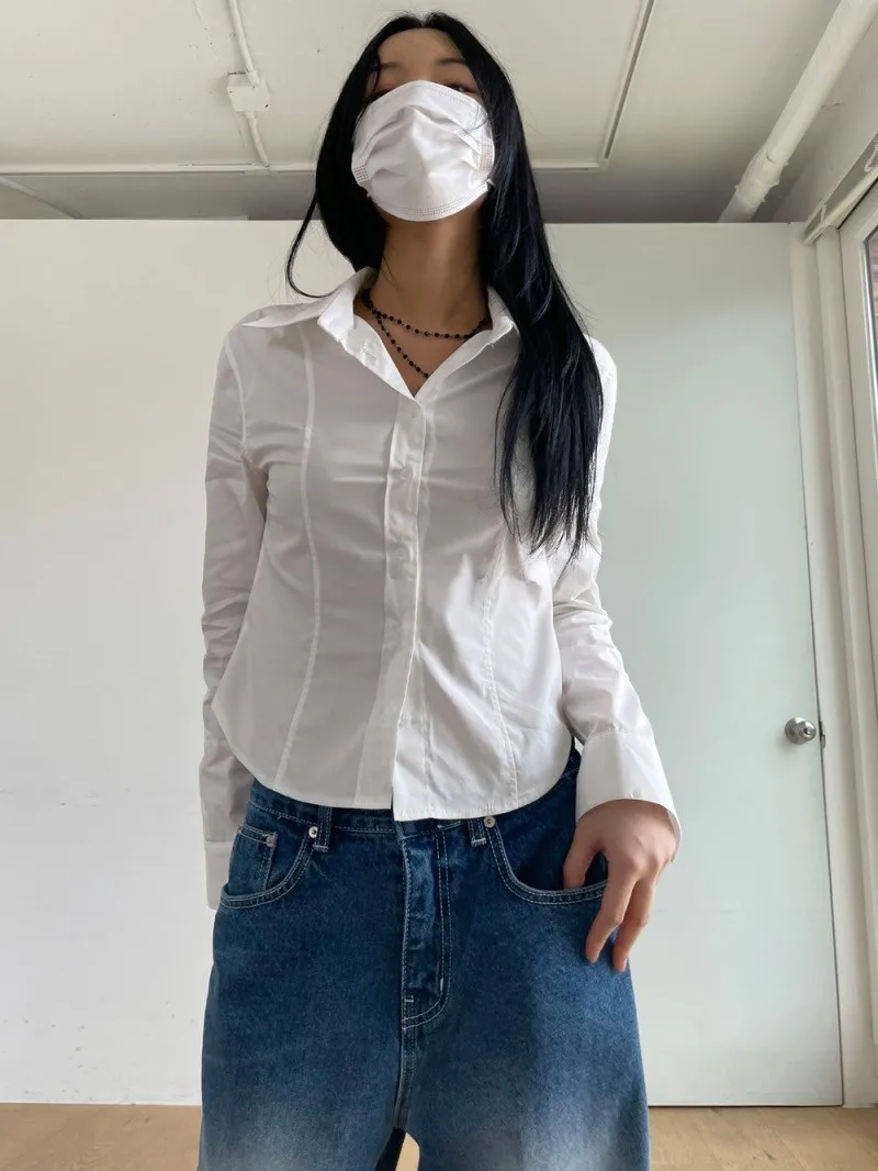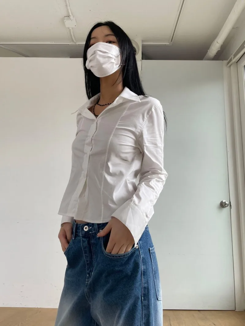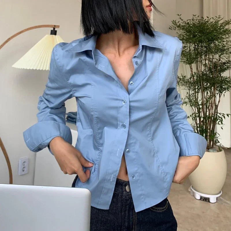 KYLTHOMASW - Women Shirts 2024 Autumn Long Sleeve Polo Neck Blouse Pattern Embroidery White Blue Chic Casual Streetwear Tops