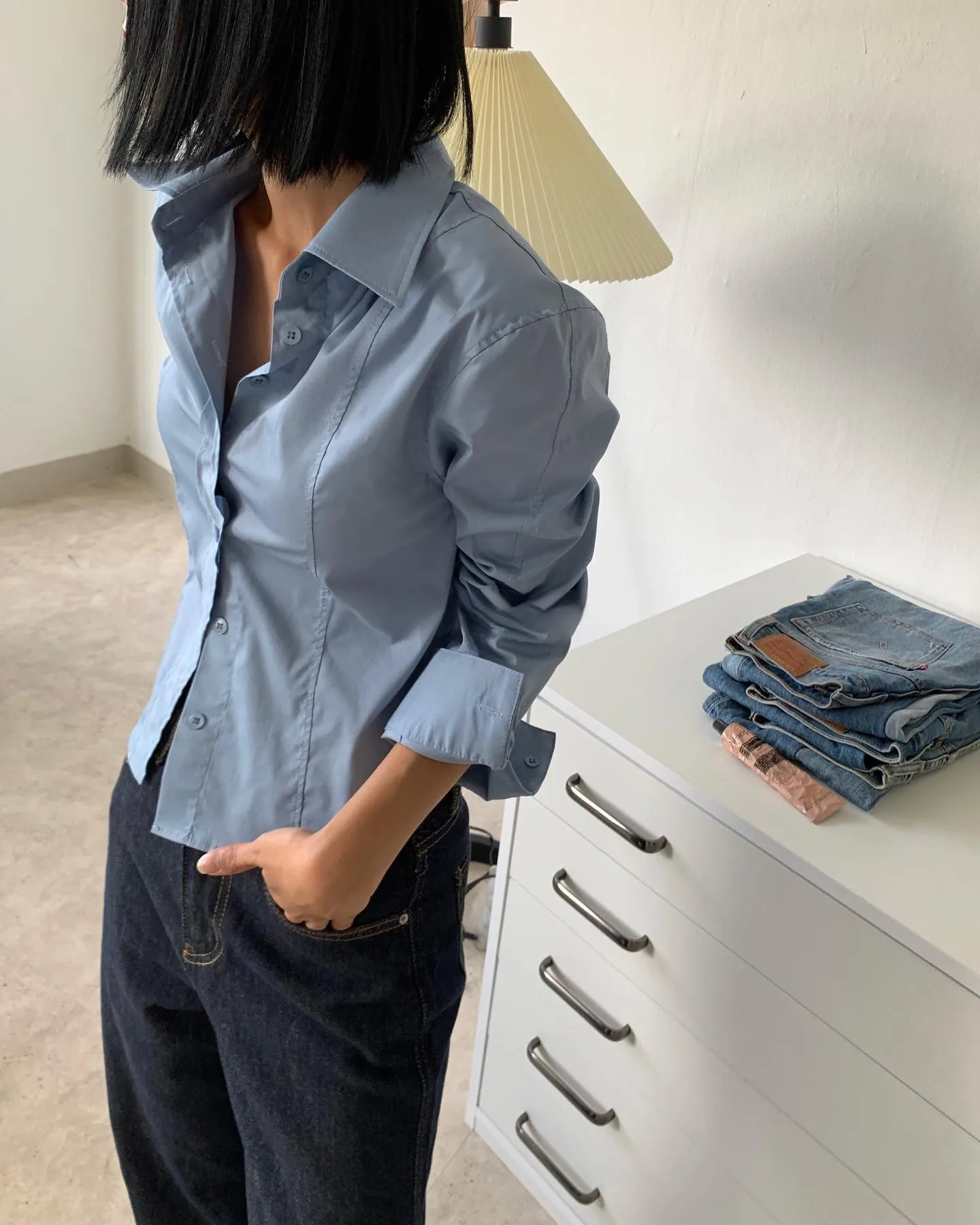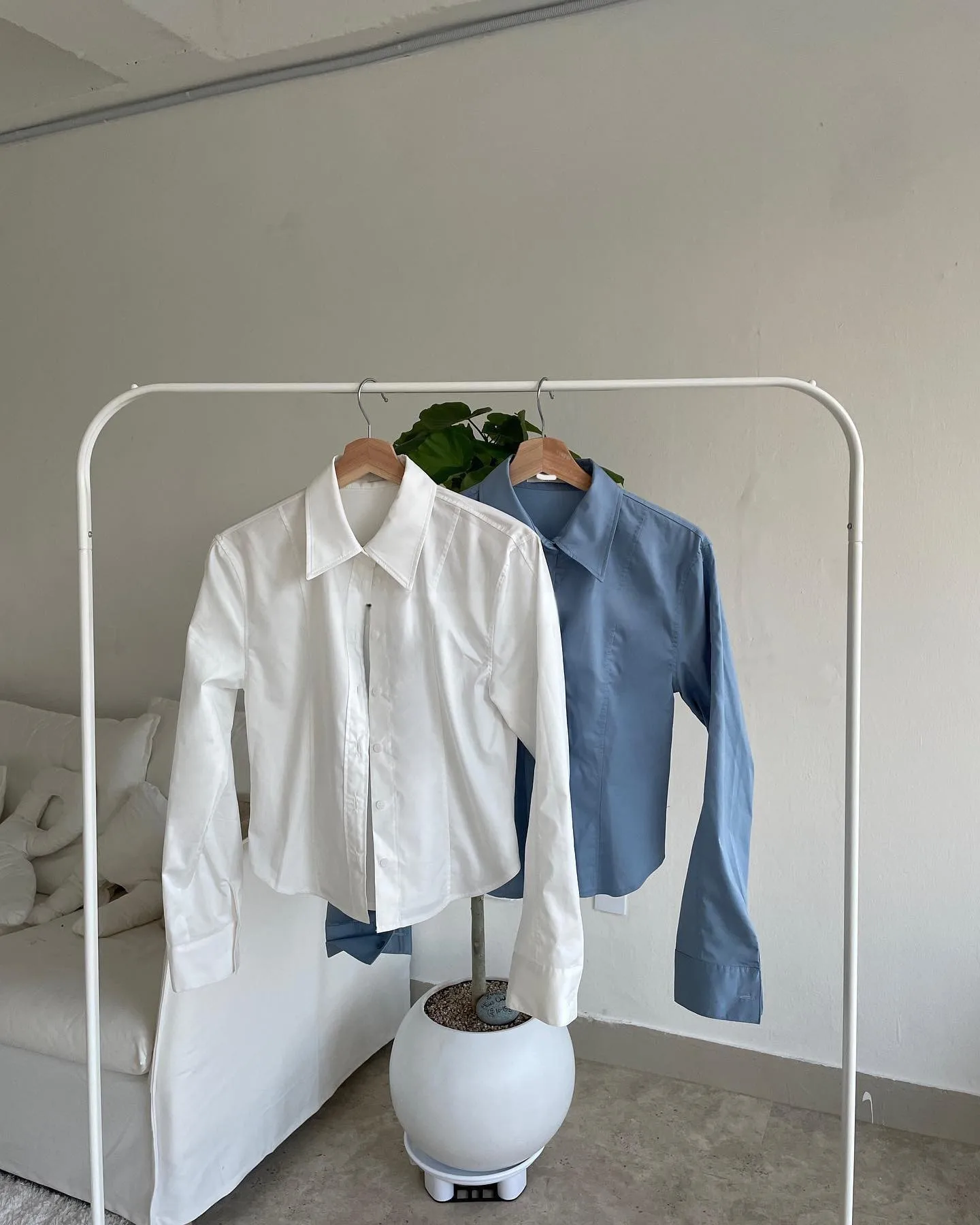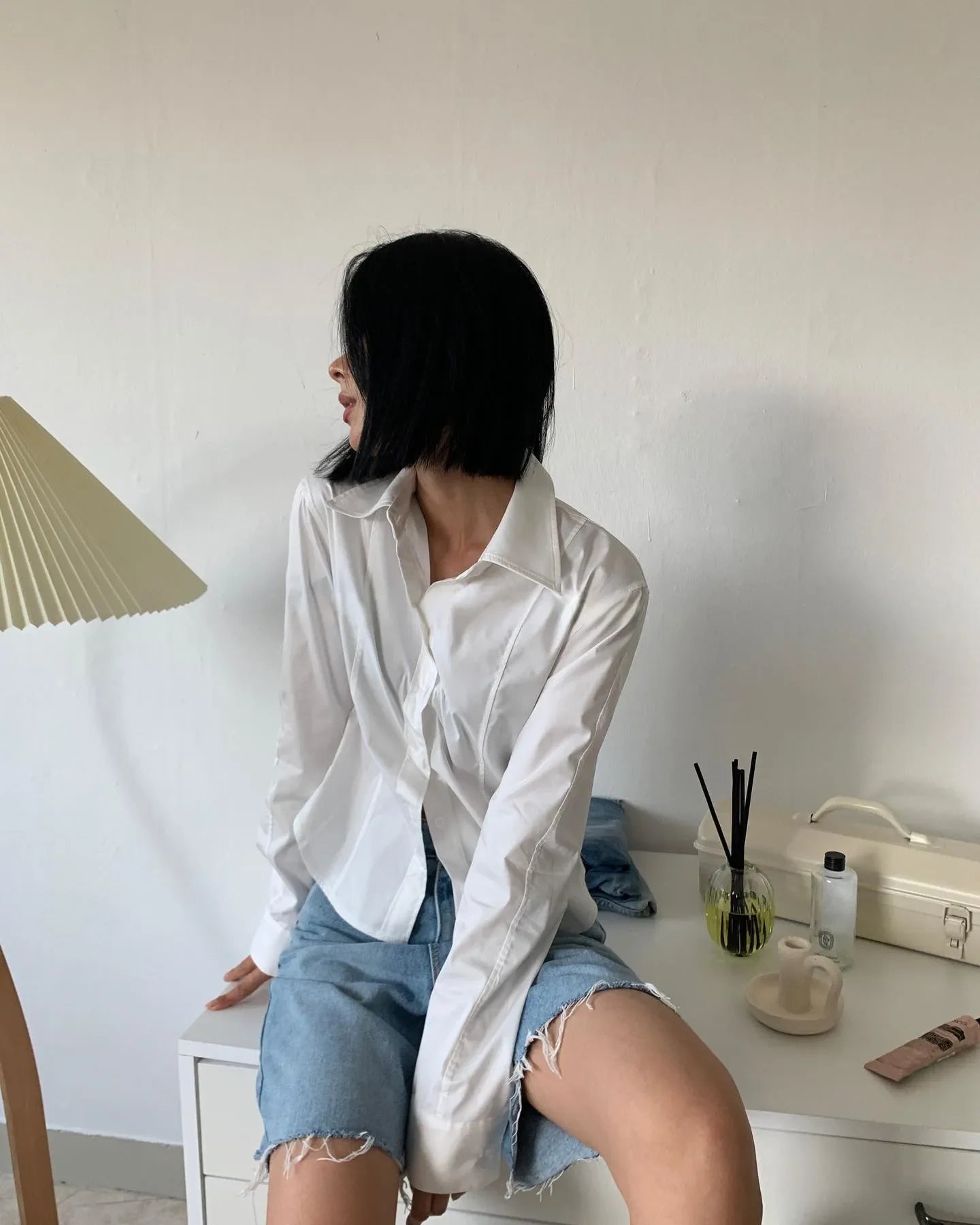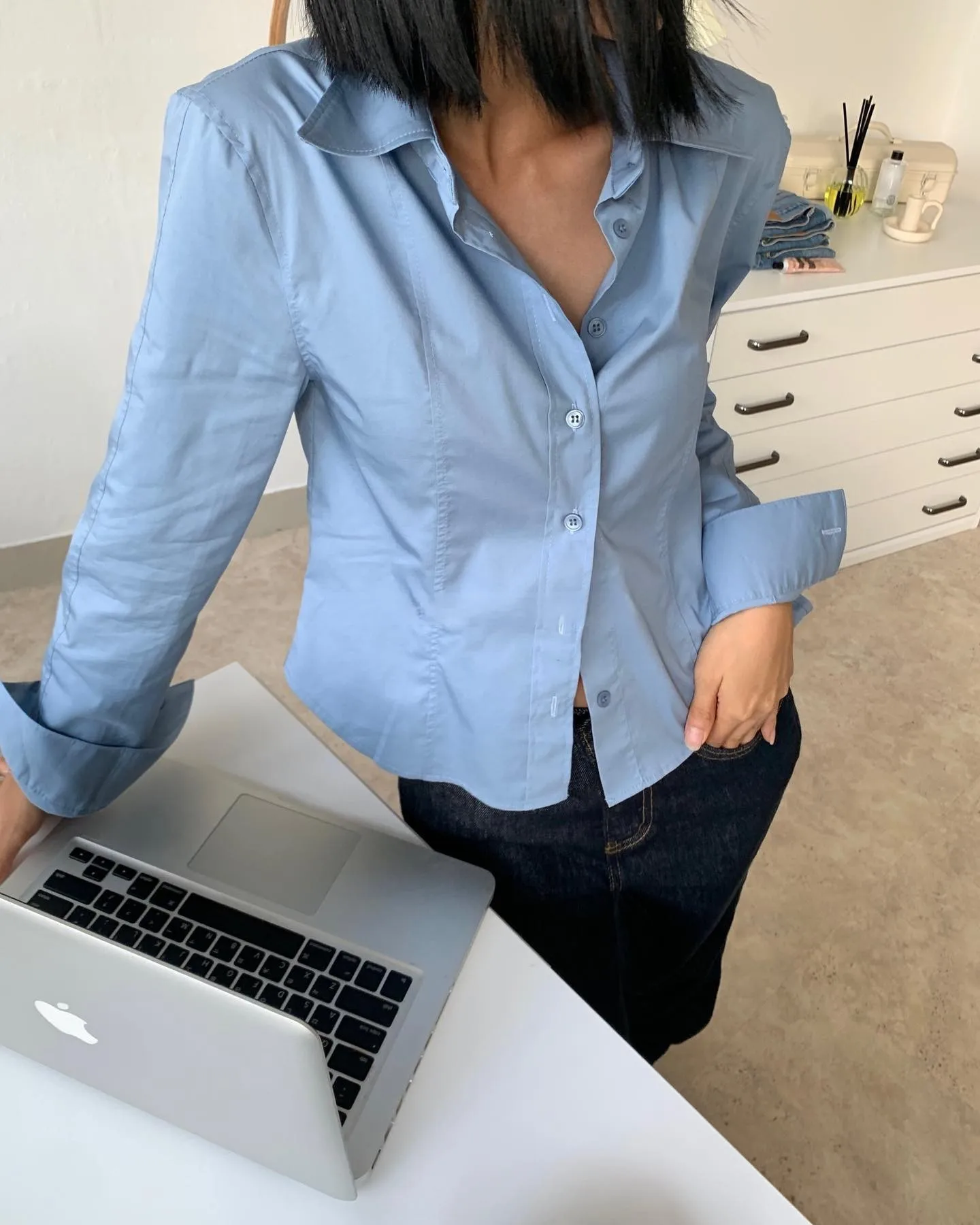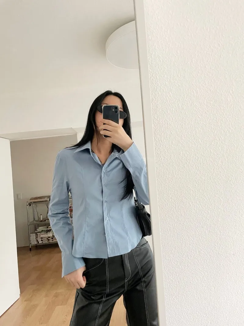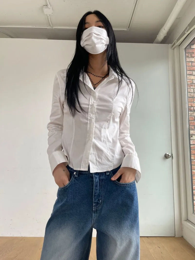 KYLTHOMASW - Women Shirts 2024 Autumn Long Sleeve Polo Neck Blouse Pattern Embroidery White Blue Chic Casual Streetwear Tops