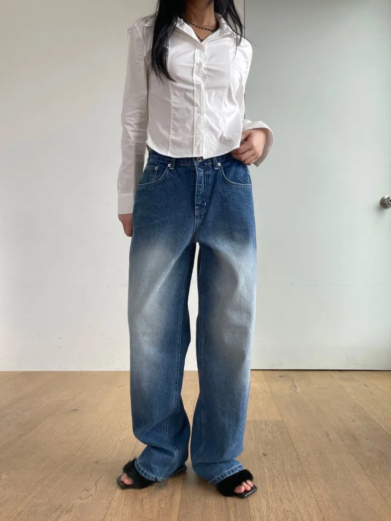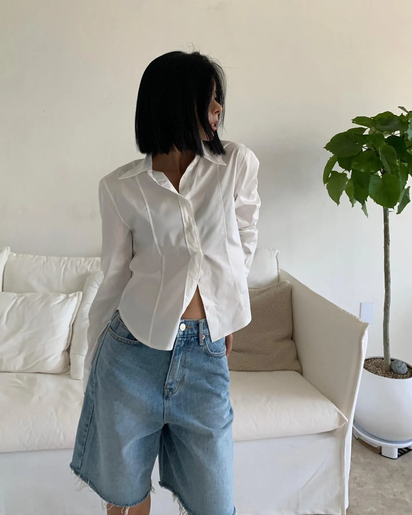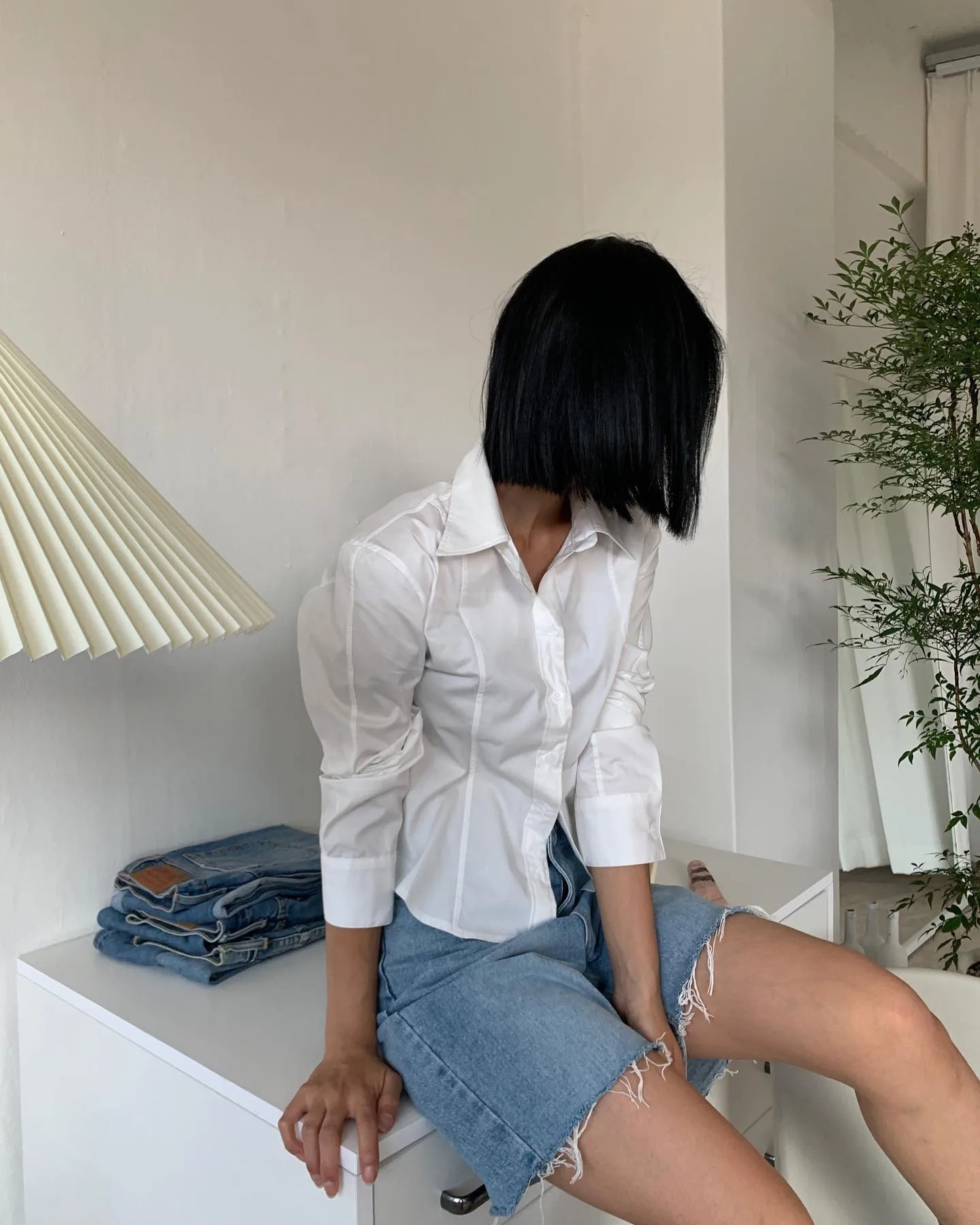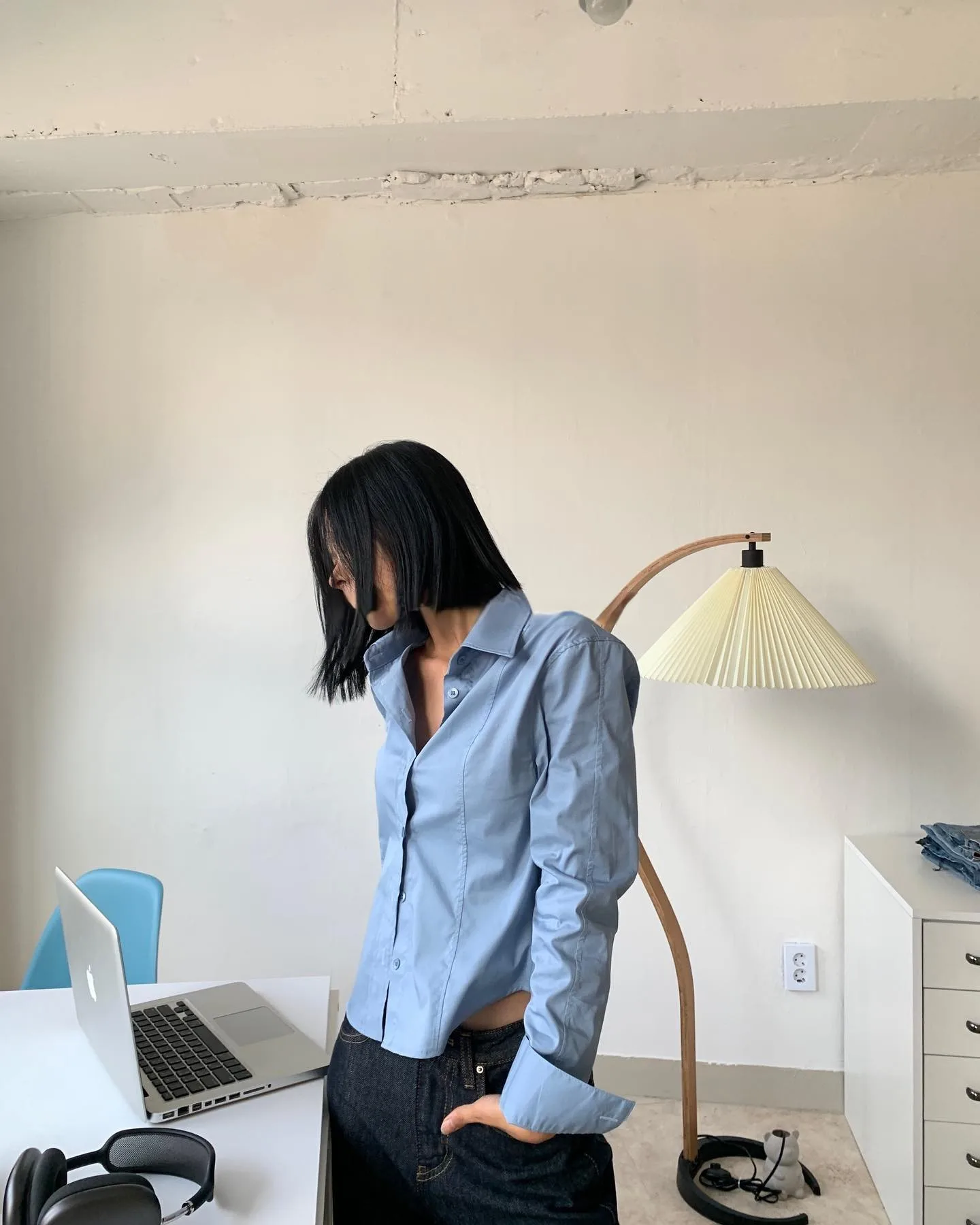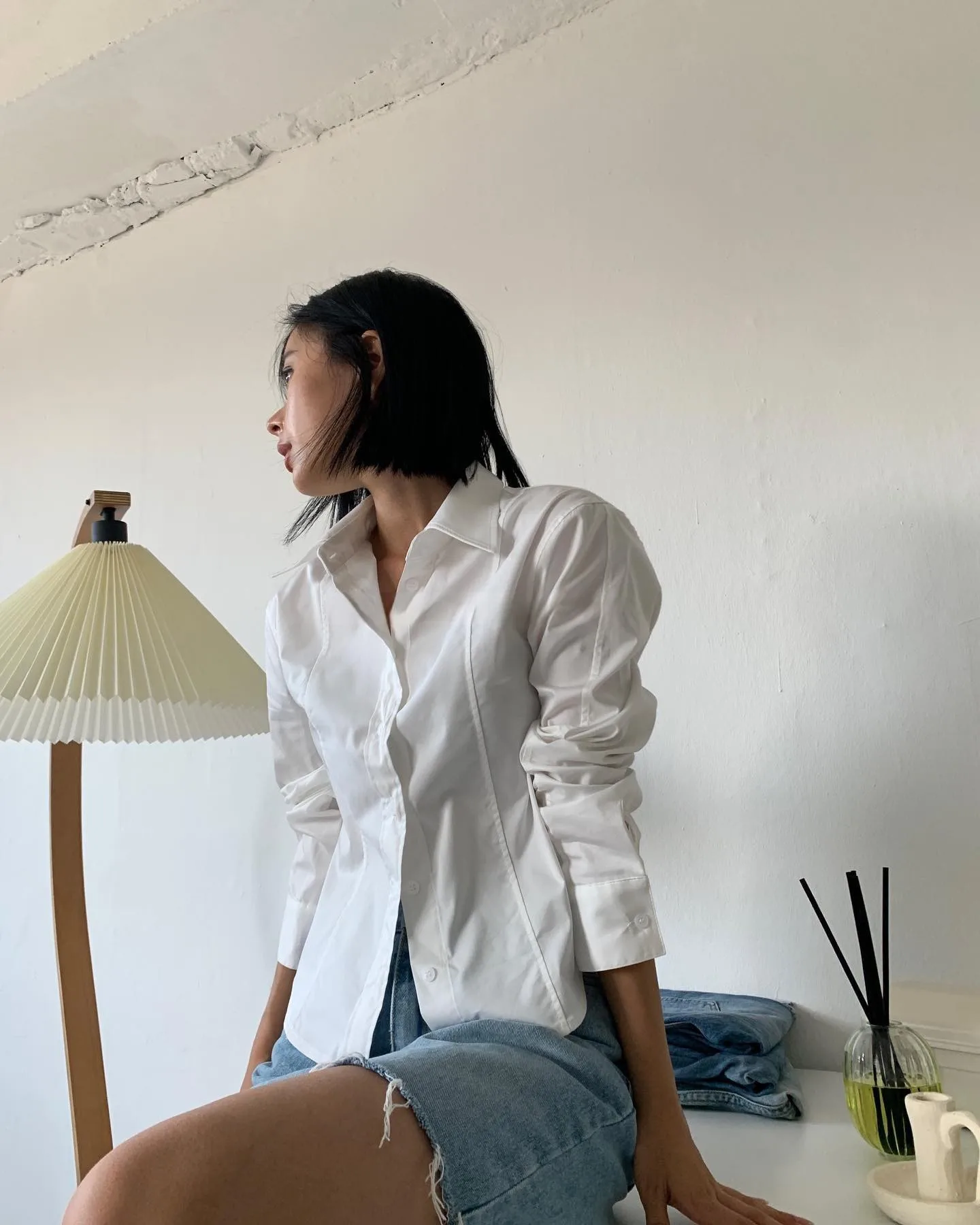 KYLTHOMASW - Women Shirts 2024 Autumn Long Sleeve Polo Neck Blouse Pattern Embroidery White Blue Chic Casual Streetwear Tops