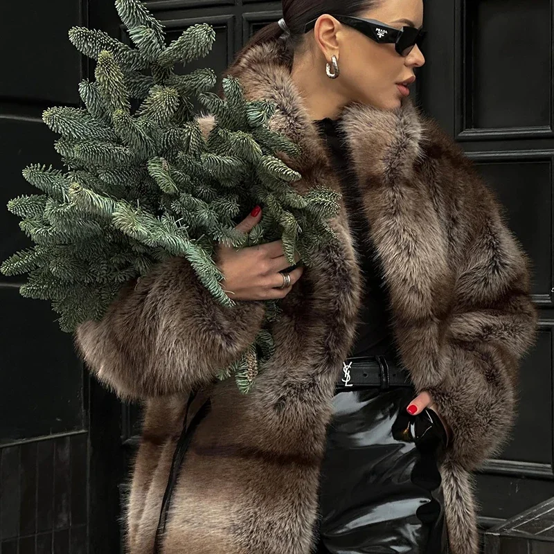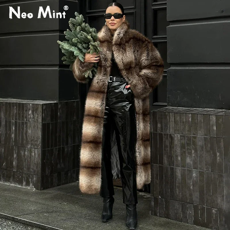 Luxury Brand Furry Faux Fox Fur Coat Women Winter Super Warm Fluffy Fur Jacket Female High Street Long Overcoat