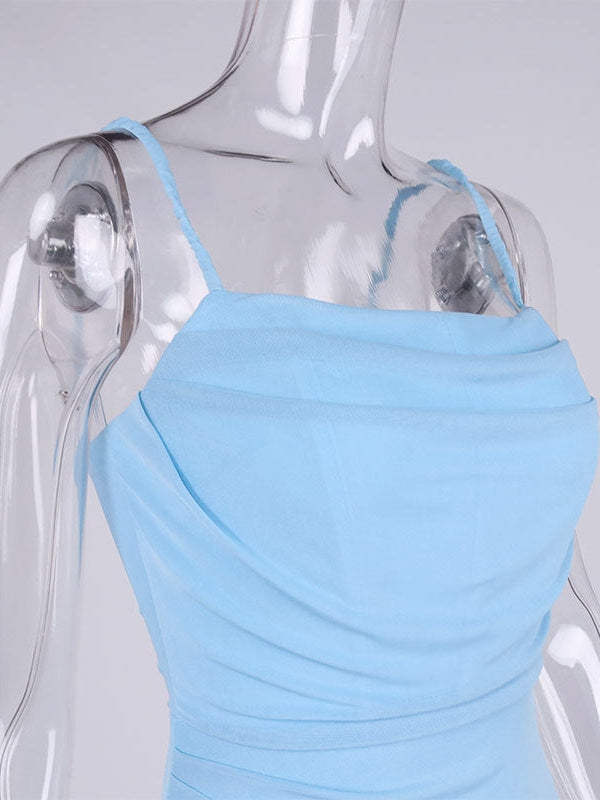Mesh Pleated Backless Suspender Boning Corset Midi Dress