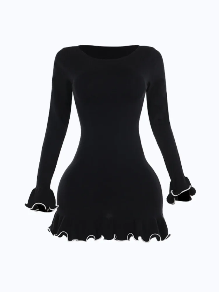 Ootddress Elegant Long Sleeved Elastic Tight Women Short Skirt Autumn New Wave Roll Wool Dress Fashion Street Evening Dress