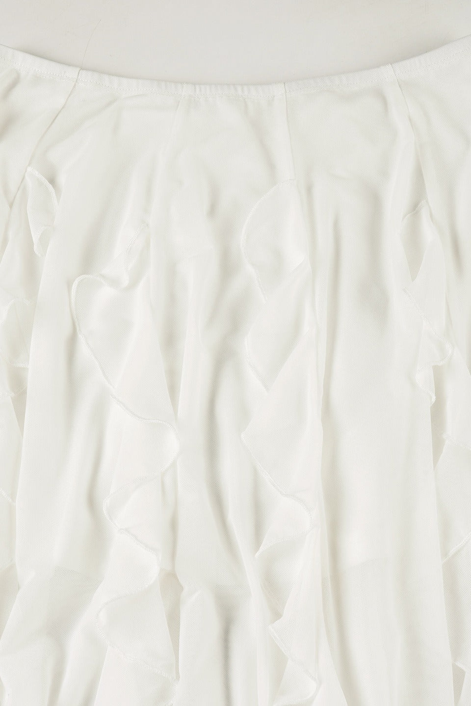 • Skirt Length: Midi• Composition: Polyester, Spandex• Details: Mesh Ruffle• Elasticity: Slight Stretch