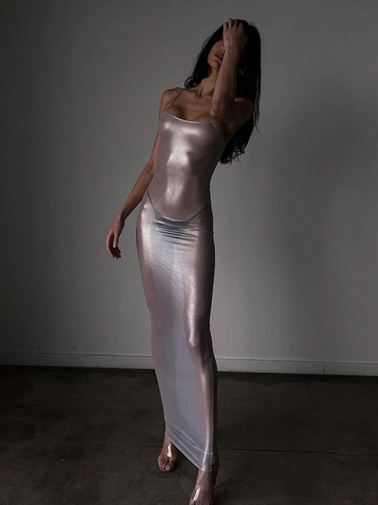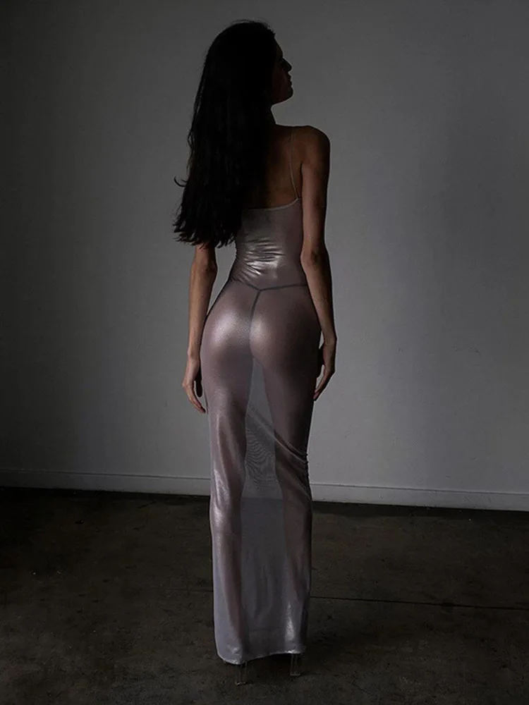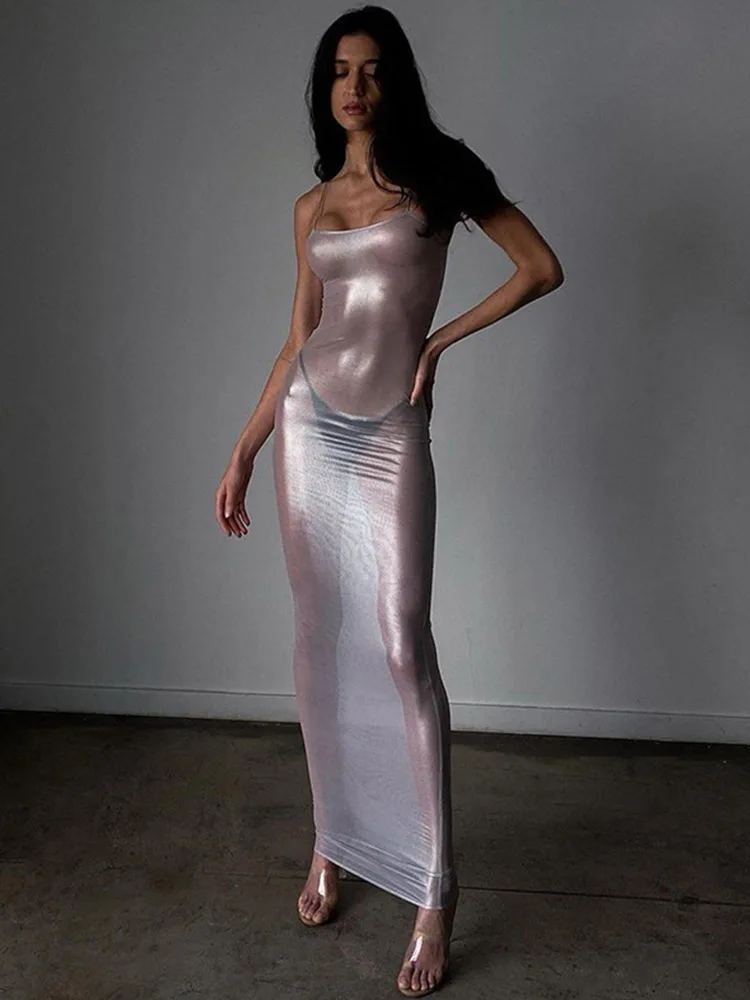 See Through Maxi Dress Women Sexy Strappy Dresses Body-shaping Vestido Female Stunning Hipster Attirewear Clothing