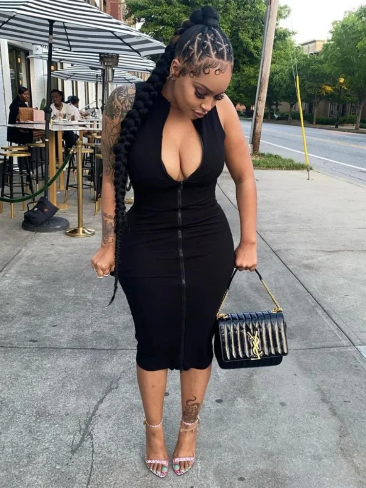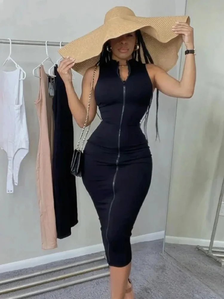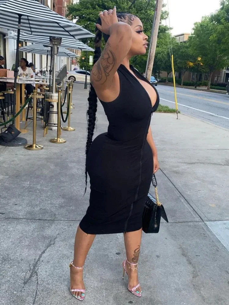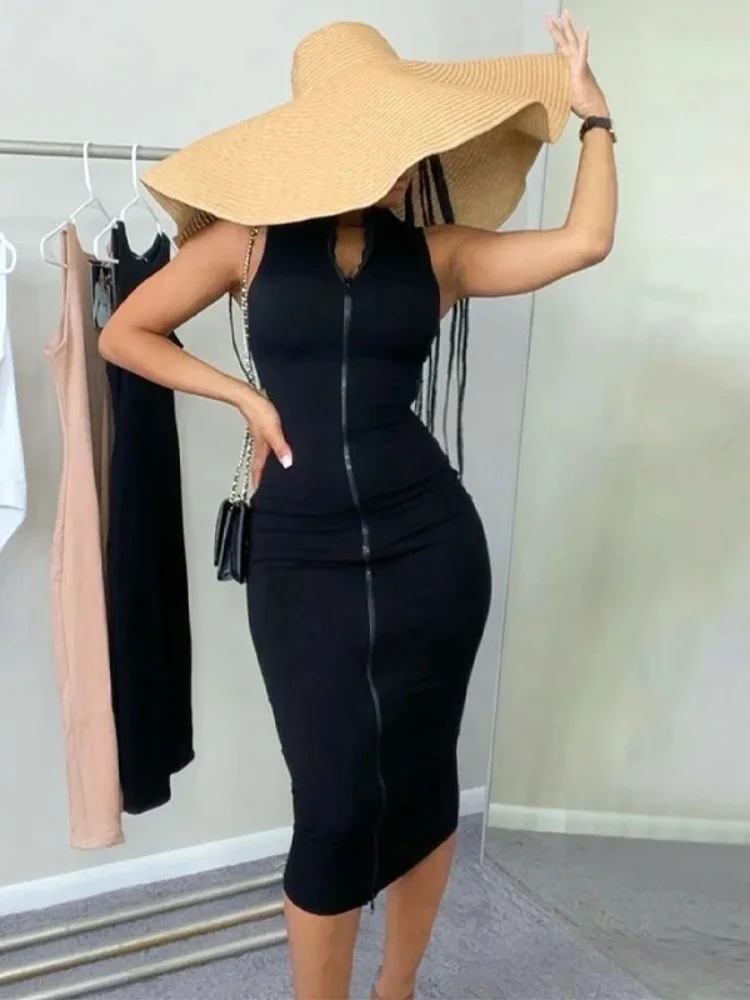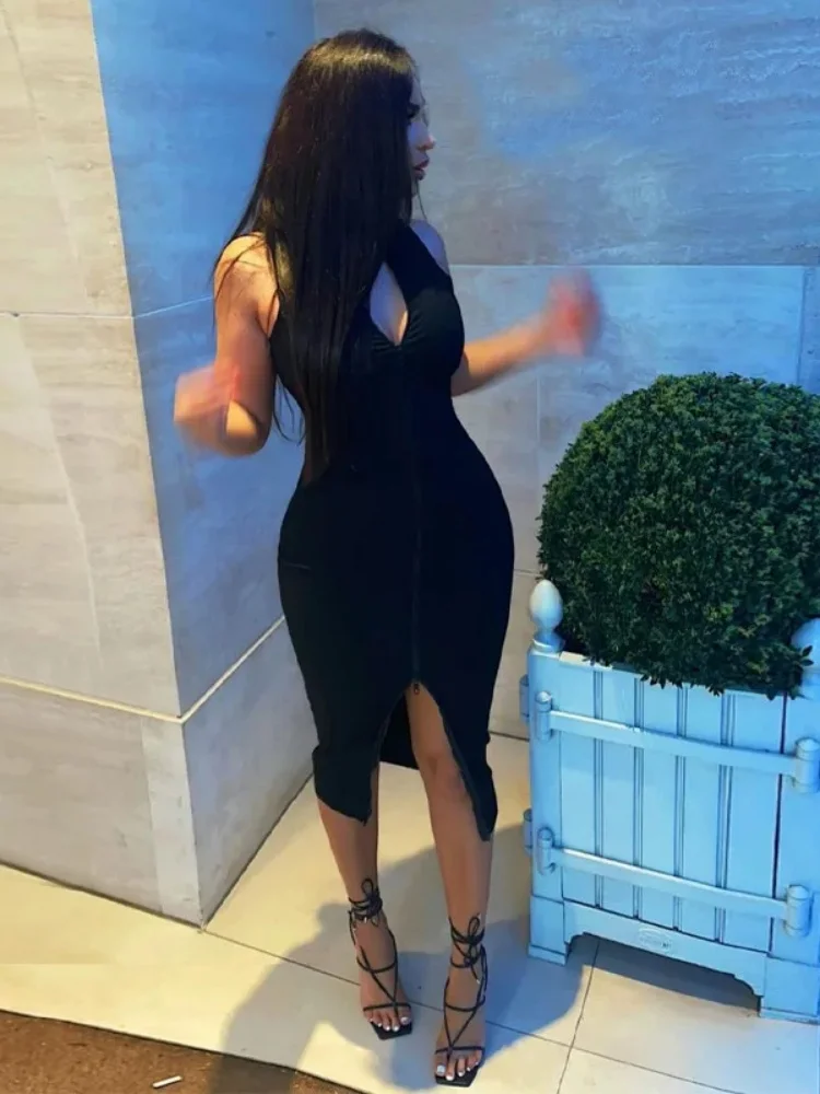 Sexi Night Dress Hot Club Outfits Women One Piece Aesthetic Clothes Sleeveless Bodycon Vestidos De Mujer Zipper Black Streetwear