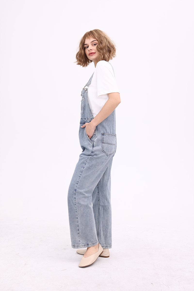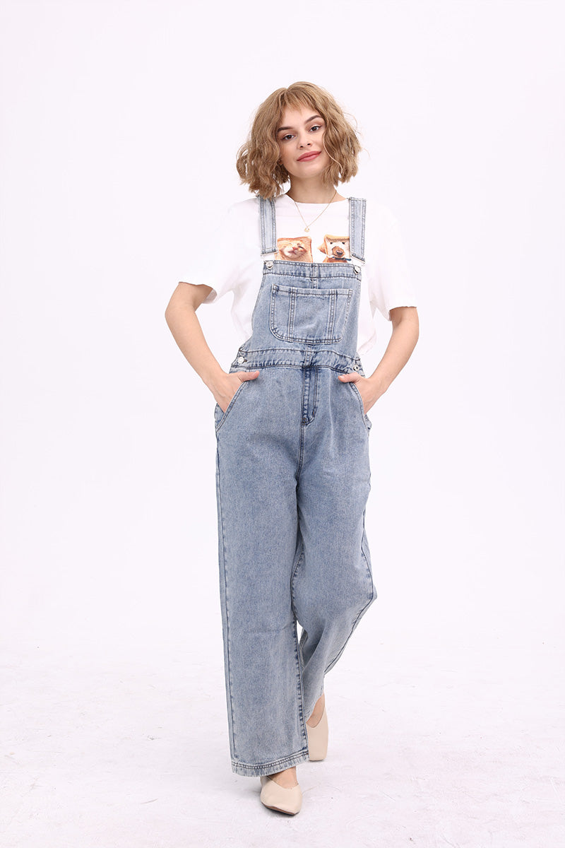 Slant Pocket Wide Leg Denim Overalls
