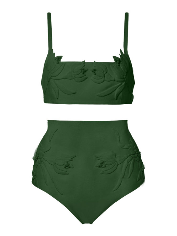Solid Color Embossed Pattern Fashion Bikini Swimsuit