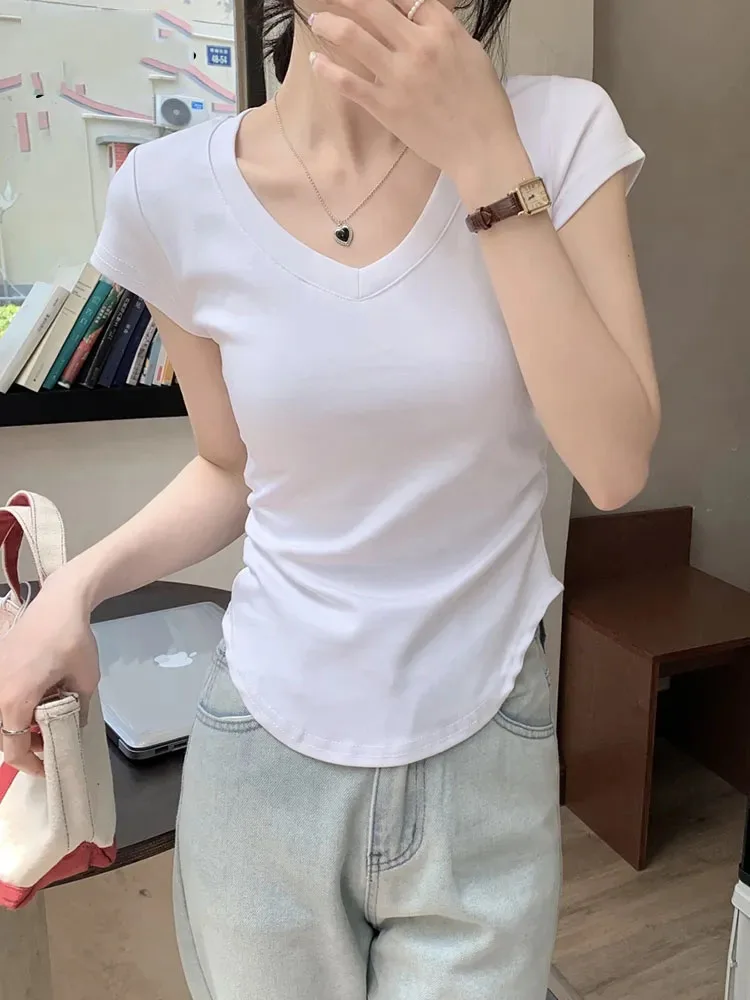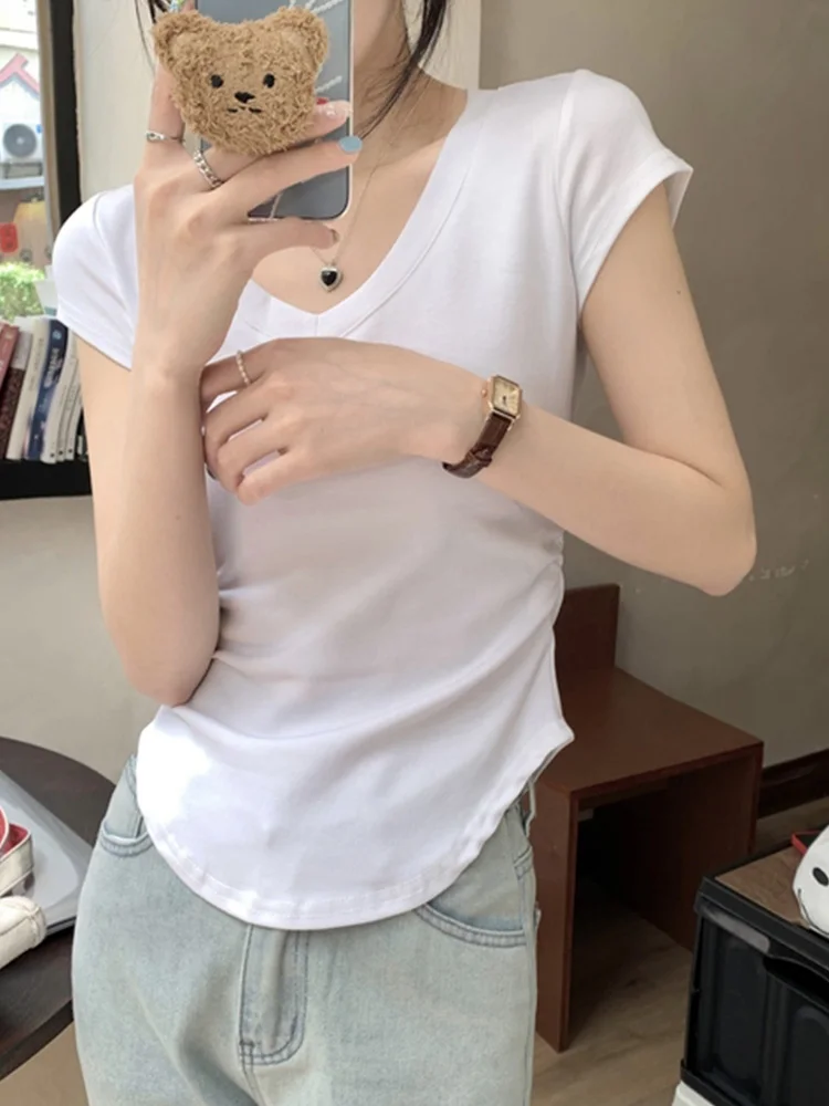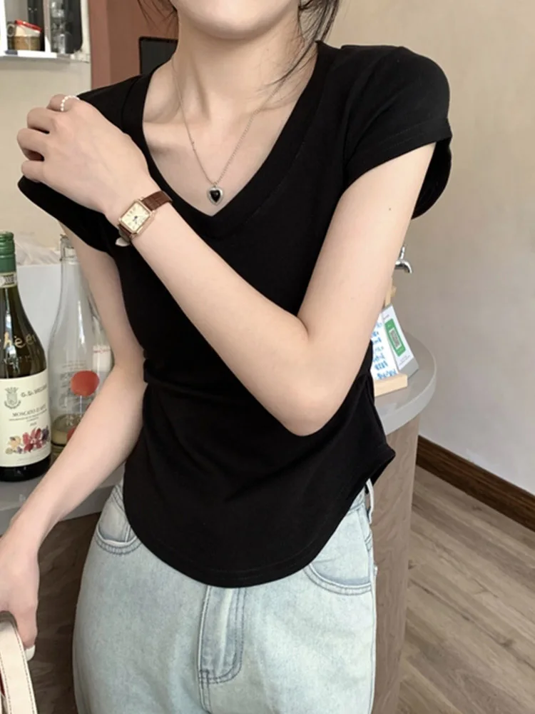 Summer New Solid Color Slim Women’s T-shirt Loose Casual Fashion Basic T-shirt Woman Black White Gray Simple Top Female