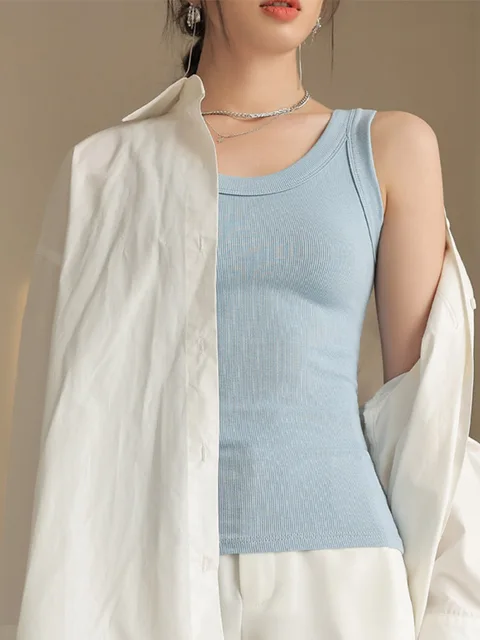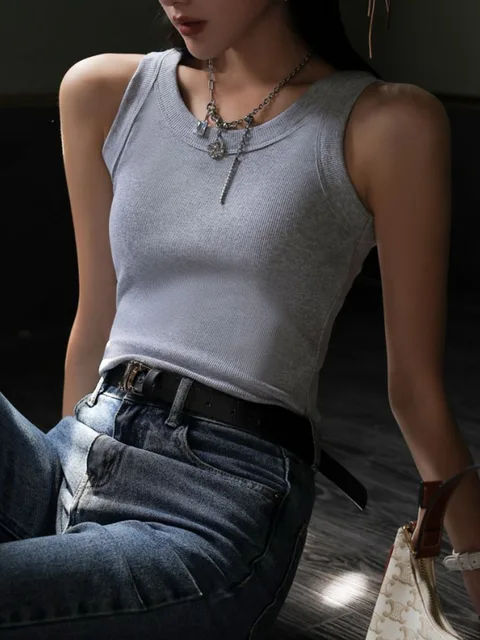 Summer Ribbed Knitted Tank Tops Women Off Shoulder Crop Tops Basic Shirts Casual Suspender Sport Vest Slim Top