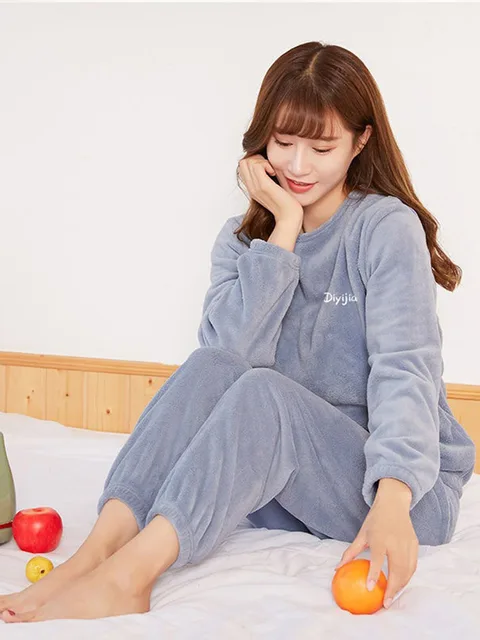 Women Velvet Pajama Set Loose Top And Elastic Waist Pants Home Casual Warm Woolen Suit Women 2025 Autumn Winter